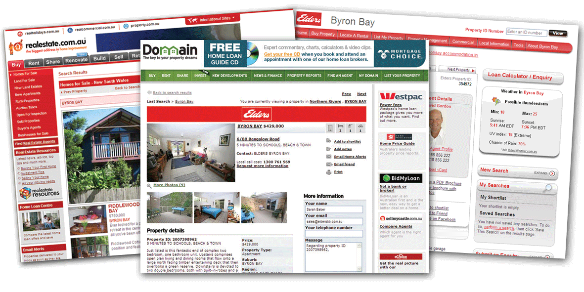 THE POWER OF THE INTERNET The internet has undoubtedly been one of the most dramatic and important changes in the real estate industry over recent years. It has completely revolutionised the way that buyers search for property and allows properties to be marketed and viewed (virtually) 24 hours a day, 7 days a week. In Australia, the internet has been embraced at a faster rate than the mobile phone. With no geographical limits, the internet has helped to open Australian real estate to a much wider audience, both nationally and internationally. Statistics show that an ever increasing percentage of people use it to locate real estate and that it can lead to higher prices and quicker sales. Overall, 86% of buyers now commence the search for their new home online and at Elders Byron Bay we can attribute 46% of all property enquiries to our internet strategy. All properties listed with us are not only registered on our office website (eldersbb.com.au) but also on Australia’s best real estate websites as standard. In today’s competitive market place, it is not enough to just be on the internet, you need to be prominently seen on the right websites. Elders Byron Bay subscribe to both realestate.com.au and domain.com.au, the two most visited online real estate websites in Australia.